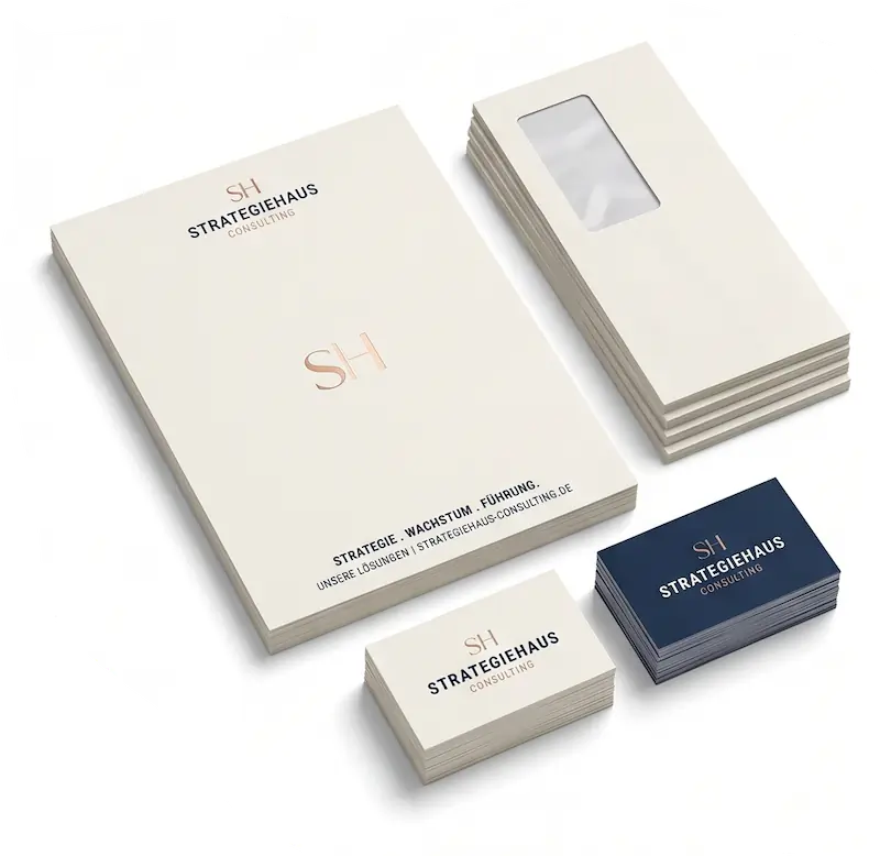 Ihr Alltag ist voll. Design-Recherche, Angebote vergleichen, Abstimmungsrunden, Korrekturen. Das kostet Sie Stunden, die Sie nicht haben. Am Ende landet es ganz unten auf der Liste.
